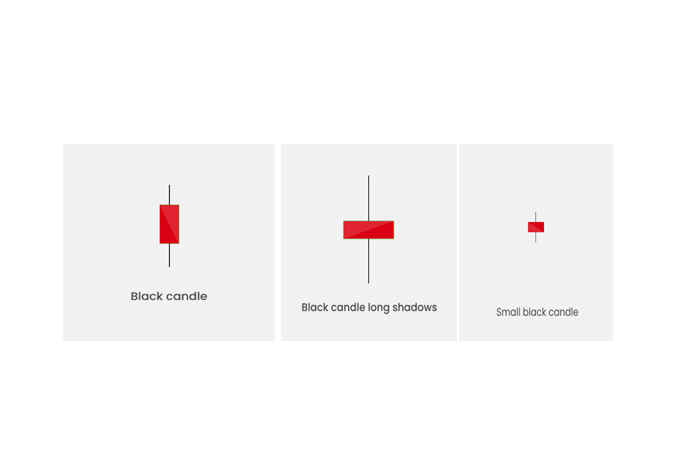 Black candles are identified by a closing price lower than the opening price, indicating a downward trend. However, they can vary in size and shape, and there are three main types: black candles with a large body, black candles with long shadows, and black candles with small real bodies and shadows.