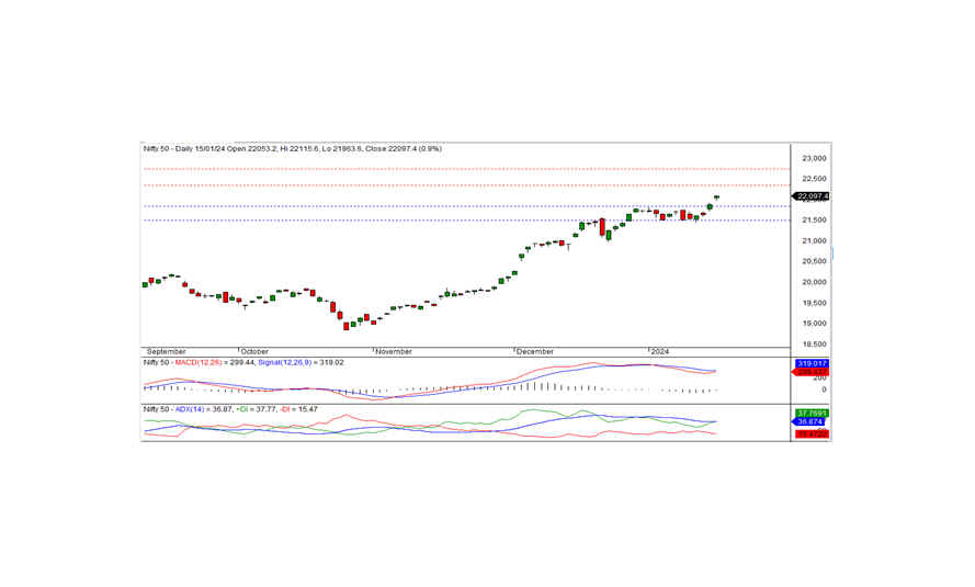 In the latest trading session, the Nifty achieved a historic high, concluding at 22,097.45, marking a notable gain of 202.90 points or 0.93 percent. Sustaining the current bullish trajectory depends on the Nifty maintaining levels above 22,075.